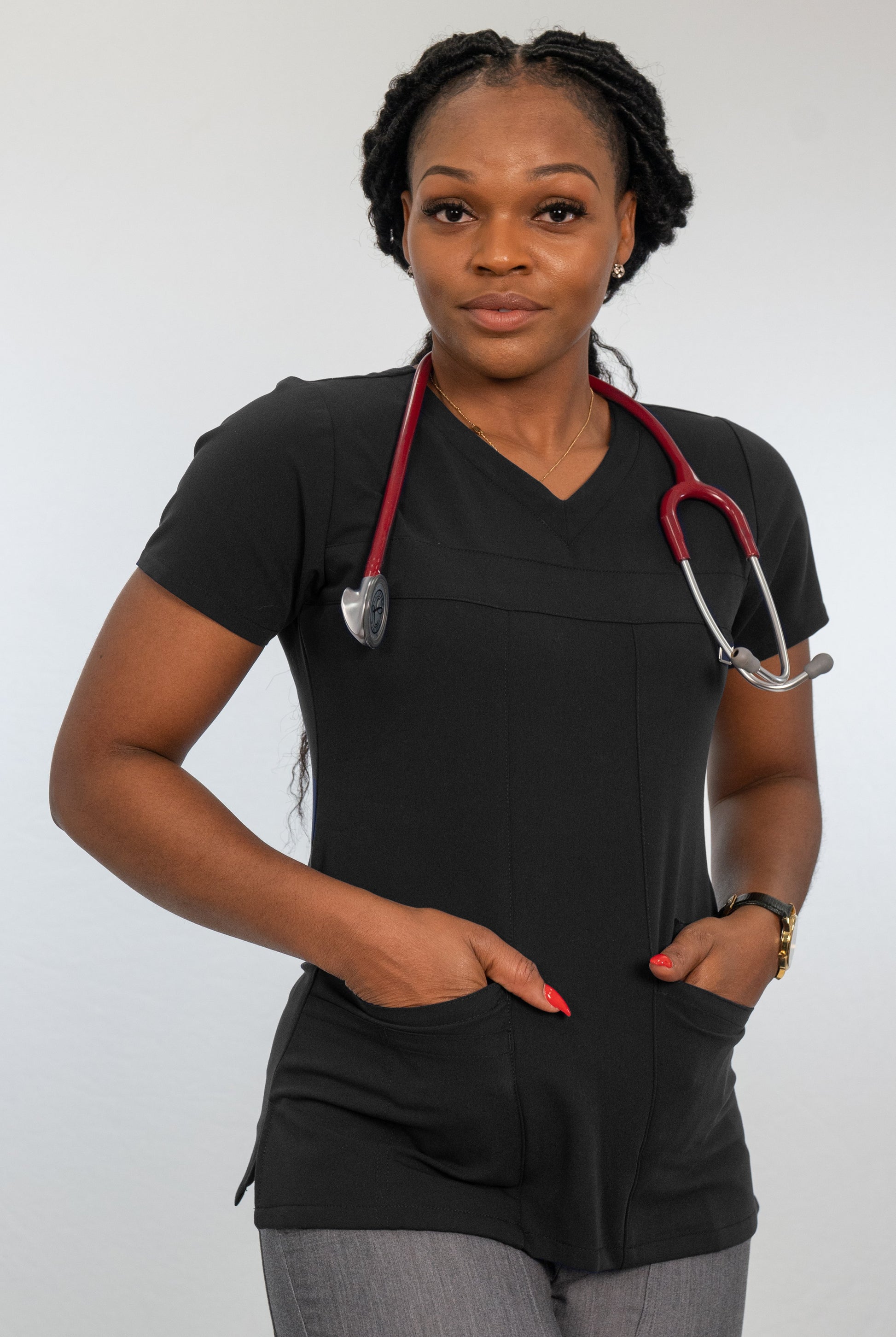 Antimicrobial Sima Refined V-Neck Scrub Top By Wozo XXS-5XL / Black