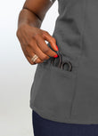 The Yami Graceful 4 Pocket Scrub Top provides a comfortable and relaxed feel with a form-fitting look, combining our luxuriously soft fabrics with our Mau 4-Way Stretch Technology. Its zippered-neck design allows for a wide range of comfortability and style options throughout the day, and its asymmetrical waist-level pockets (four in total) enable you to carry what you whatever and however much you need, without feeling overloaded or bulky.