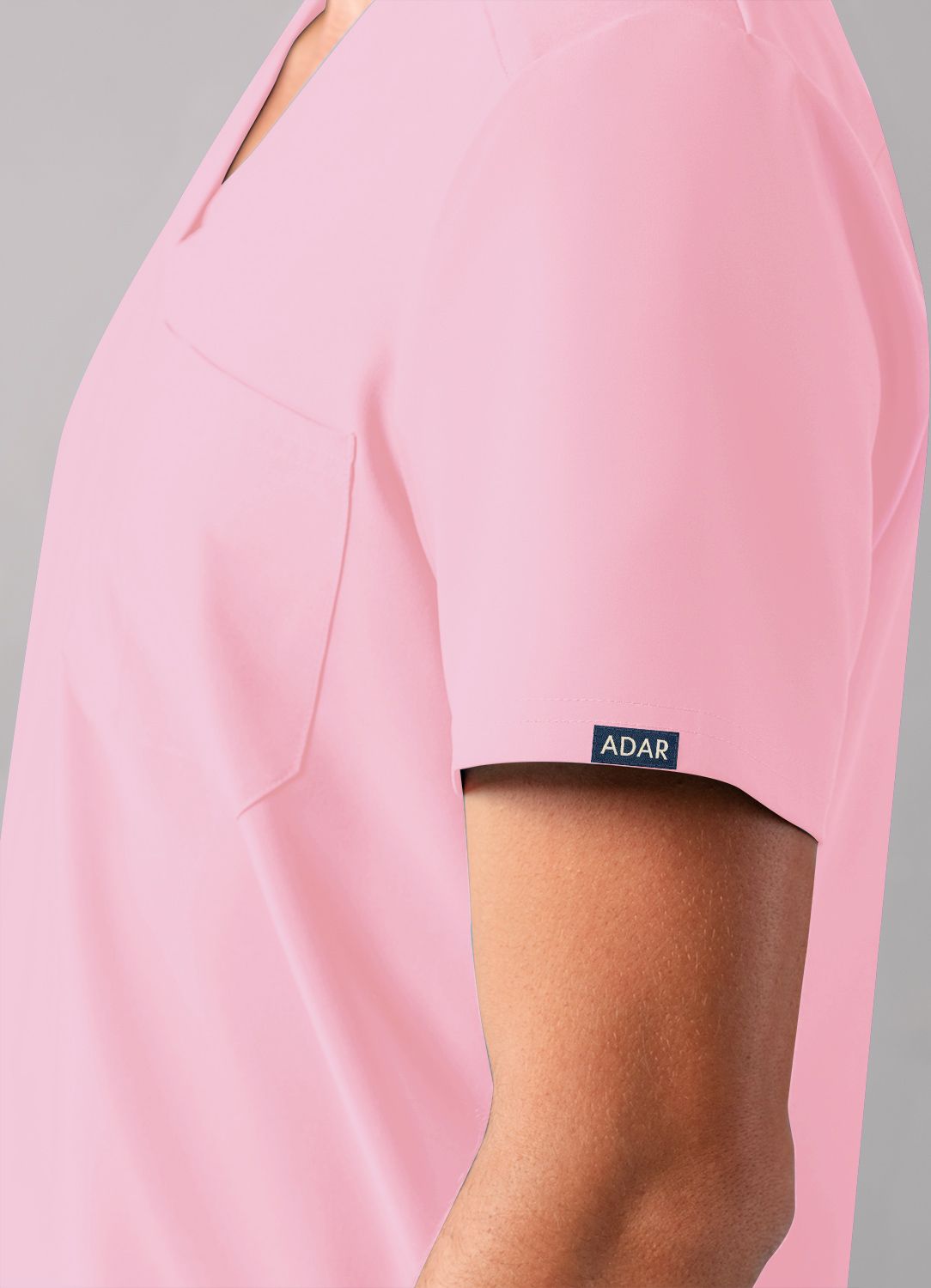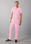 Men’s contemporary fit V-neck scrub top incorporates simple lean design with a modern edge. This top features 1 chest patch pocket with tech and pen storage. The fashionable pleated back detail and the side vents allow easy movement and flexibility while the enhanced details such as forward shoulder and back yoke seam, and ADAR brand icon on the back give this top a modern look. This style is a modern version of a classic must-have.
