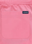 Flat front waistband with soft stretch outer drawstring