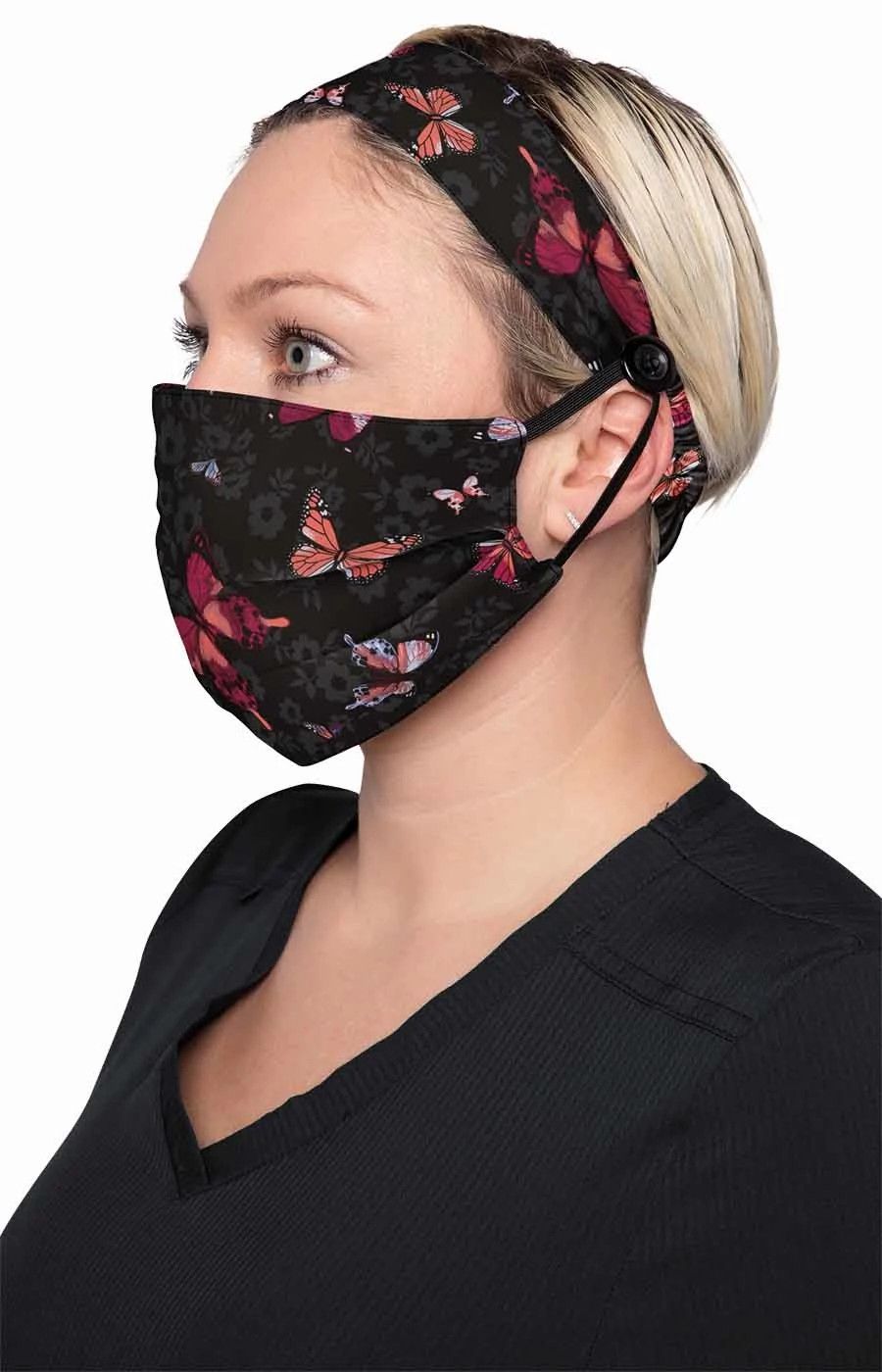 Social distance in style with these fun and fashionable headband and fashion mask combos. Mask loops connect to a button on the headband so your ears are free and comfortable.