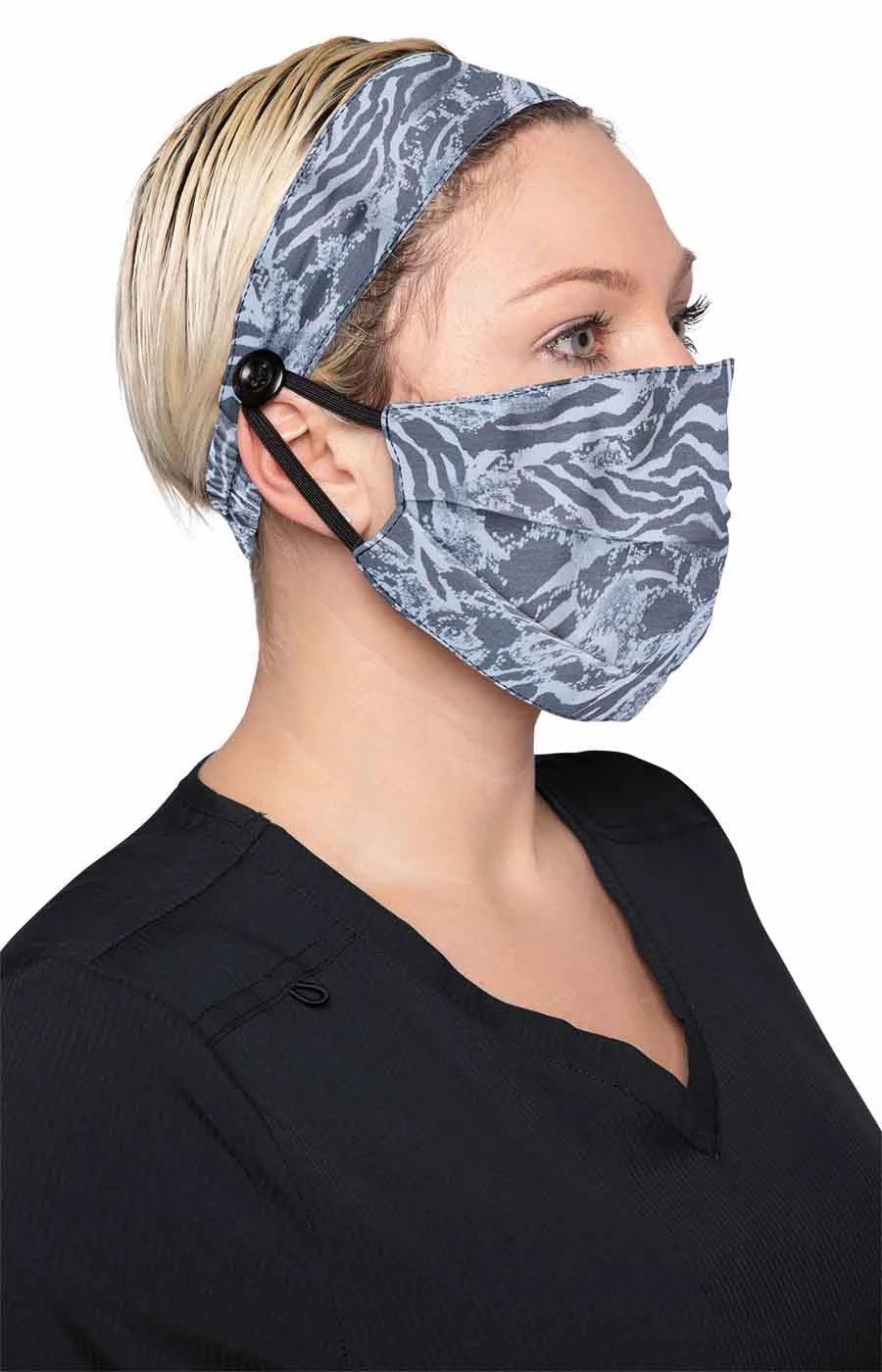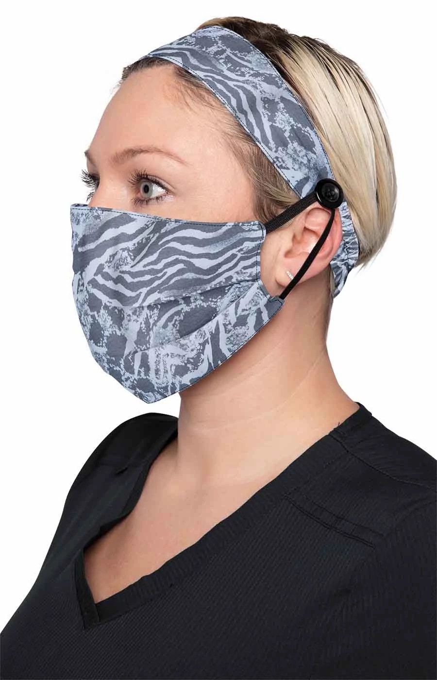 Fashion Mask + Headband Set by KOI / Zebra Snake Burnout Heather Grey