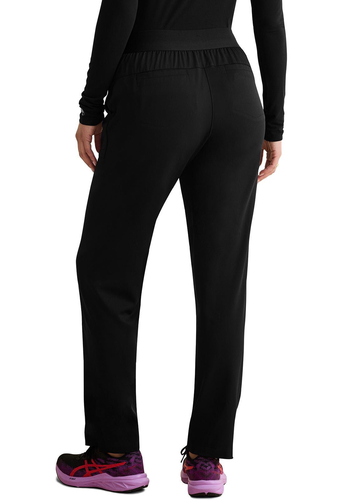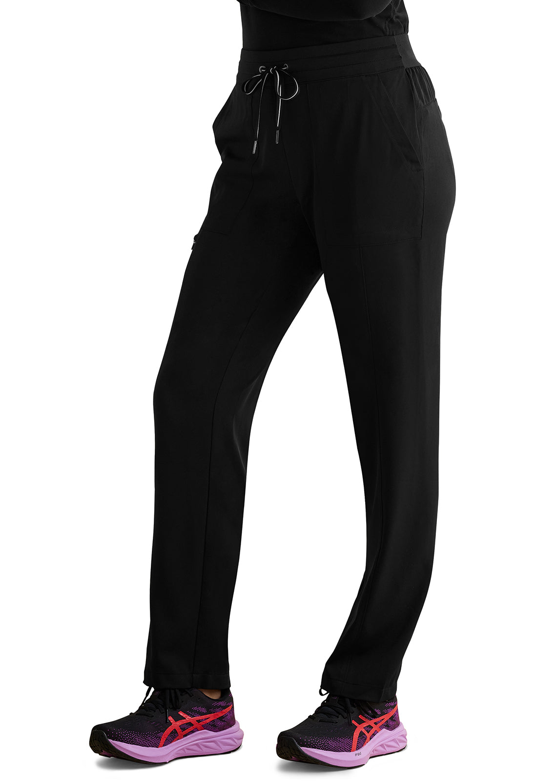 The Kally pant offers updated styling with leg-lengthening front seams and a flattering straight leg. This limited edition style has a drawstring front and herringbone-patterned elastic back for adjustability and security. There are five pockets for organized storage: two front pockets, one welt zipper cargo pocket with a Healing Hands logo zipper pull, and two back welt pockets. Zipper cargo pocket and back welt pockets include pretty printed pocket bags. A back yoke provides a better and smoother fit. Modern fit. 15" leg opening. Inseam: 30.5"