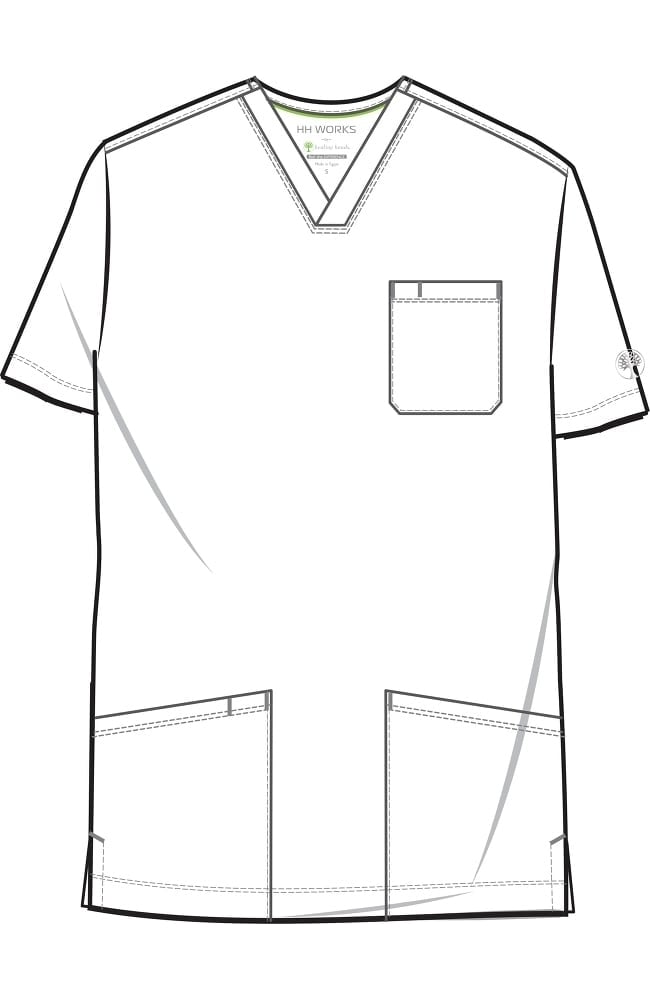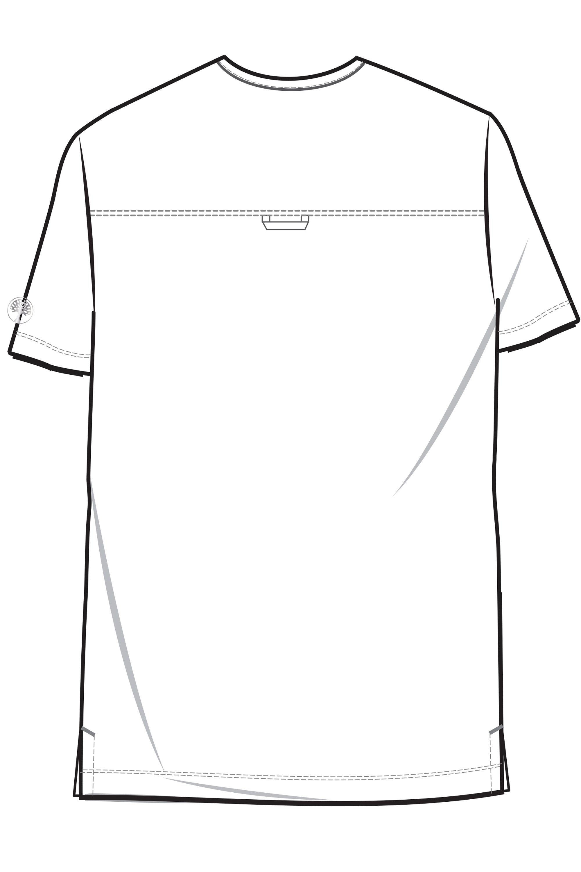 Men's Matthew V-Neck Scrub Top features four pockets, including one upper chest pocket on the left with a pen slot, two front angled patch pockets, and a pen slot on the right patch pocket. Side slits and a back yoke provide a better fit.