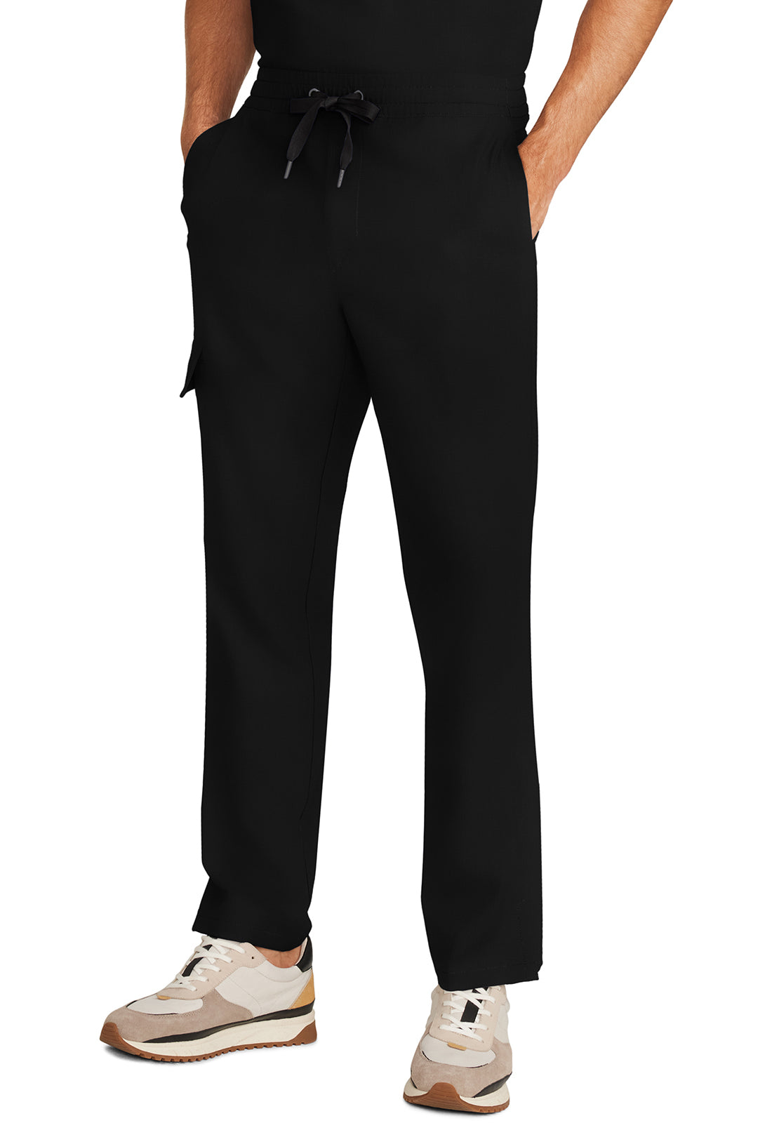 • Style and comfort combine for one very wearable pant. The Angelo mid rise pant features an elasticized waistband, webbed drawstring, and zipper fly. There are four pockets for organized storage: two front pockets, one flap cargo pocket on the wearer's right side, and one back welt pocket. Flap cargo pocket converts to a welt pocket for easy entry. Printed pocket bags for added detailing. Curved back yoke for a better fit across the hips. Side vents at hem. The soft four-way stretch fabric includes moisture wicking for added comfort. Modern fit. Straight leg, 16" opening. Inseam: 31"