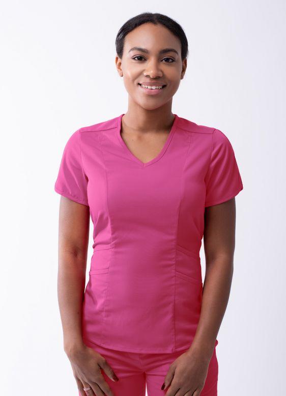 A sleek staple with flattering fit and supremely functional details, this V-neck scrub top looks professional and trendy. Our scrub top stands out with features such as odor and wrinkle resistant fabric. This powerhouse top also has the most pockets in the Pro Collection. Created with super soft fabric to get you through every shift.