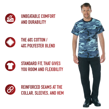 Rothco presents the Camo T-Shirt, which comes in an array of military-inspired camo colors and patterns. Whether you’re out playing a few rounds of airsoft, skating around the park, or running errands, there’s a camo tee that’ll match your needs and style. These camouflage t-shirts are great for military use, airsoft players, outdoor enthusiasts, skaters, gym-goers, and anyone who likes camo.