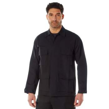 Experience durability with Rothco's BDU Shirt, crafted from robust Rip-Stop material. Reinforced elbows ensure longevity, and the adjustable button tab cuff offers a personalized fit. This uniform shirt features four large button-down bellowed pockets, a practical pencil pocket, and a button-down front with flap closure. Rothco's BDU Shirt combines functionality with a rugged style, making it the ideal choice for those seeking durability and utility in a classic button-down.