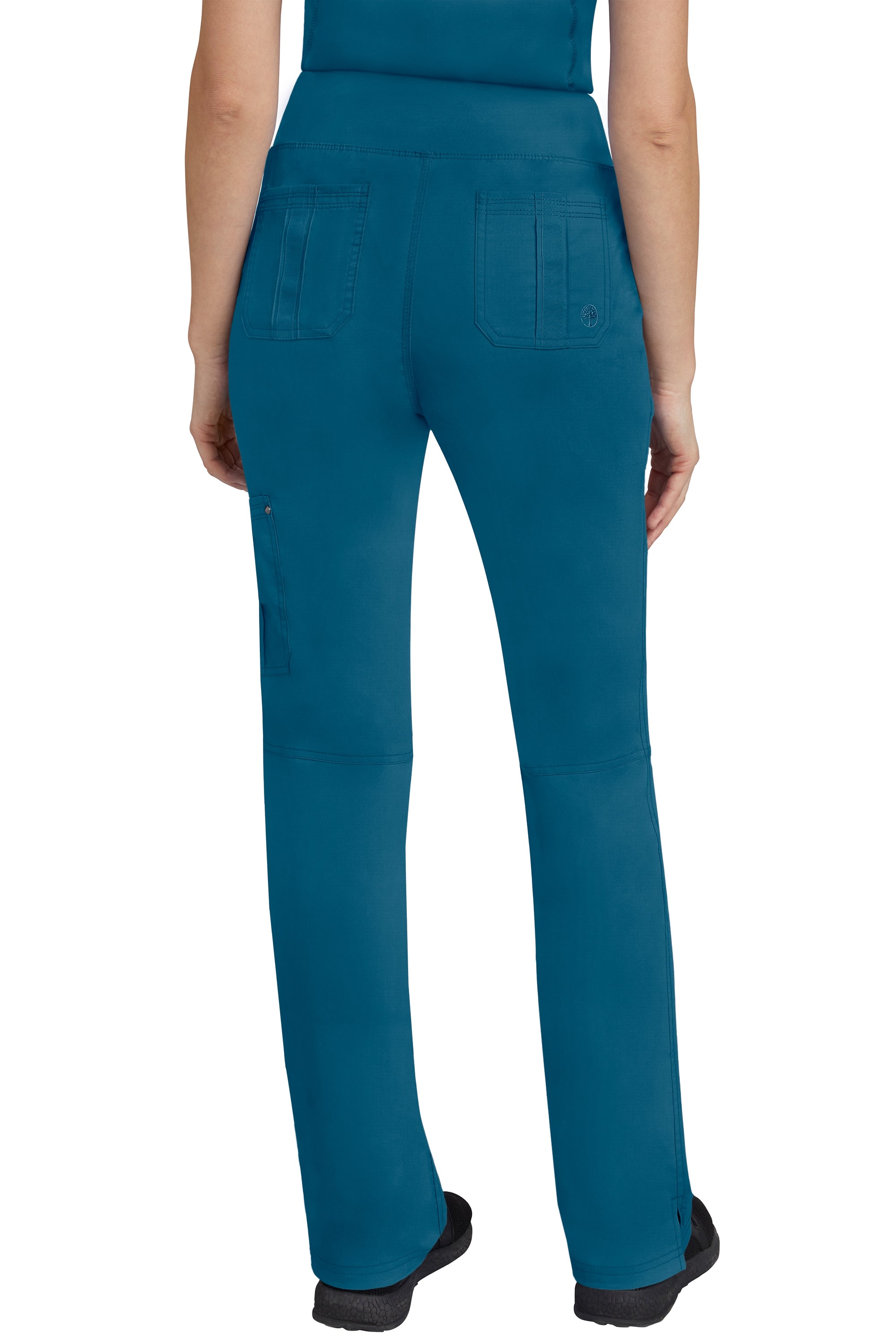 77% Poly/20% Rayon/3% Spandex Yoga inspired waistband Pant with stitching details for style and 5 pockets for storage