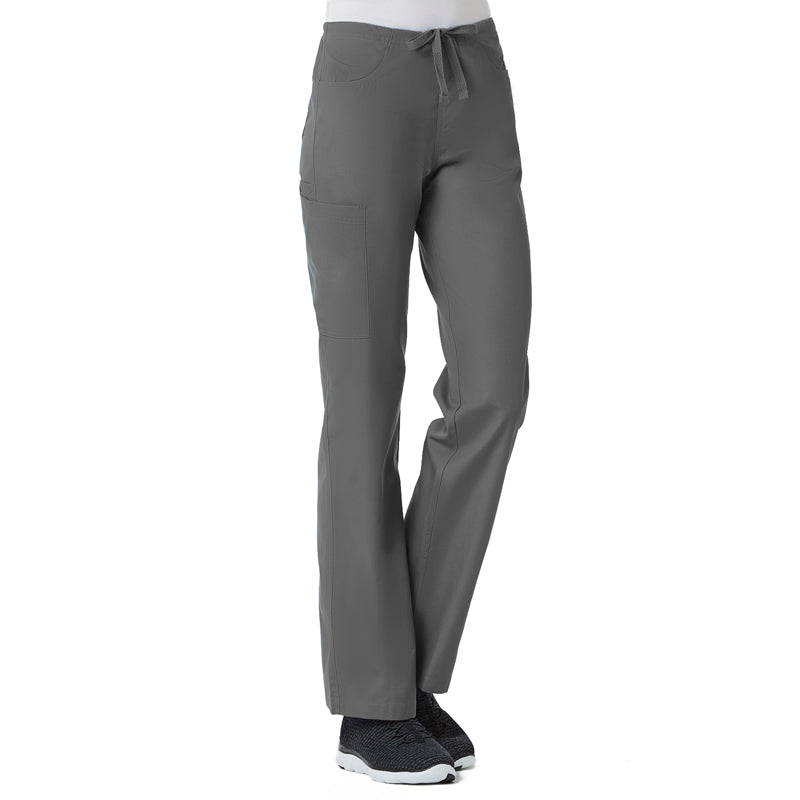 • Ladies straight leg with flat front and elastic back waist